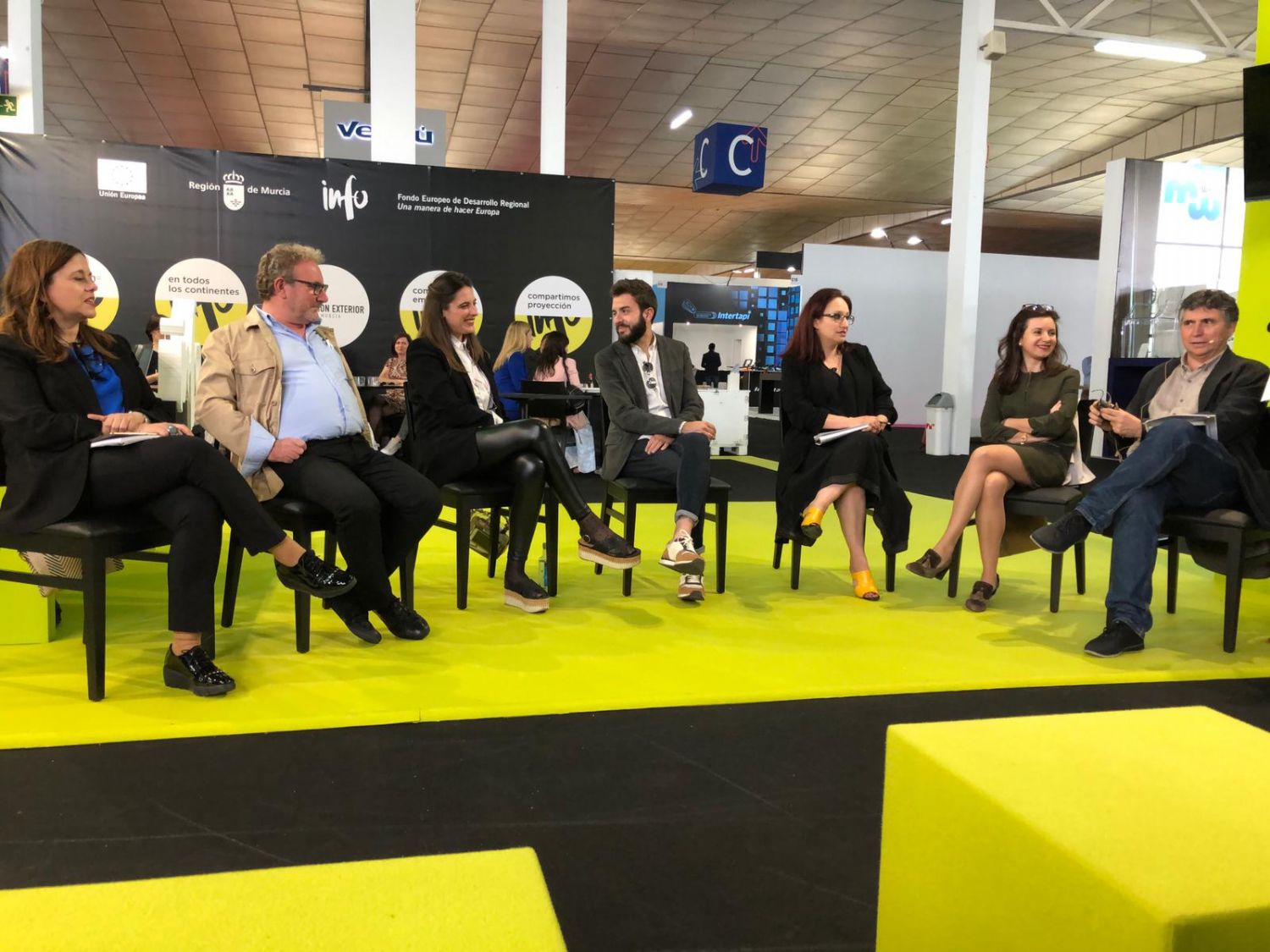 Por otro lado, otro grupo de colegiados formado por José Luis Quiñonero, Jose Antonio Cueto, Mari Carmen Ortuño, Rosa Sánchez y Mª Ángeles García, diseñó el stand del Instituto de Fomento de la Región de Murcia. Precisamente este stand recogió la Mesa Redonda ′Espacios Con_sentidos′, organizada por el colegio. Un encuentro entre profesionales donde se habló de los temas que preocupan a la profesión de los retos que tiene por delante. En ella participaron ETR - diseño_interior, Ku design, VCMC, PF1 Interiorismo, MGA asociados y Miguel A. Rubio Heras.